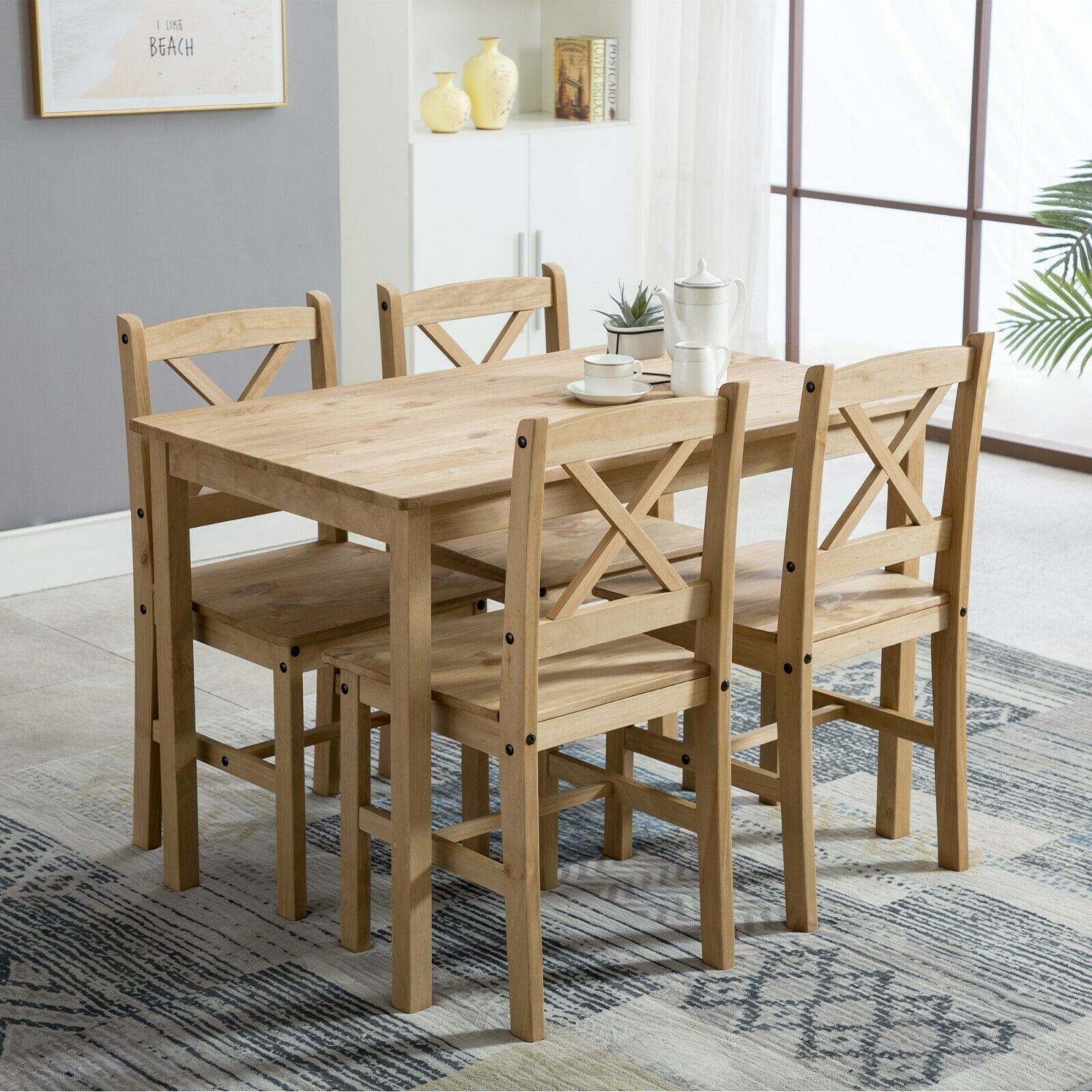 Classic Solid Wooden Dining Table and 4 Chairs Set Kitchen Home