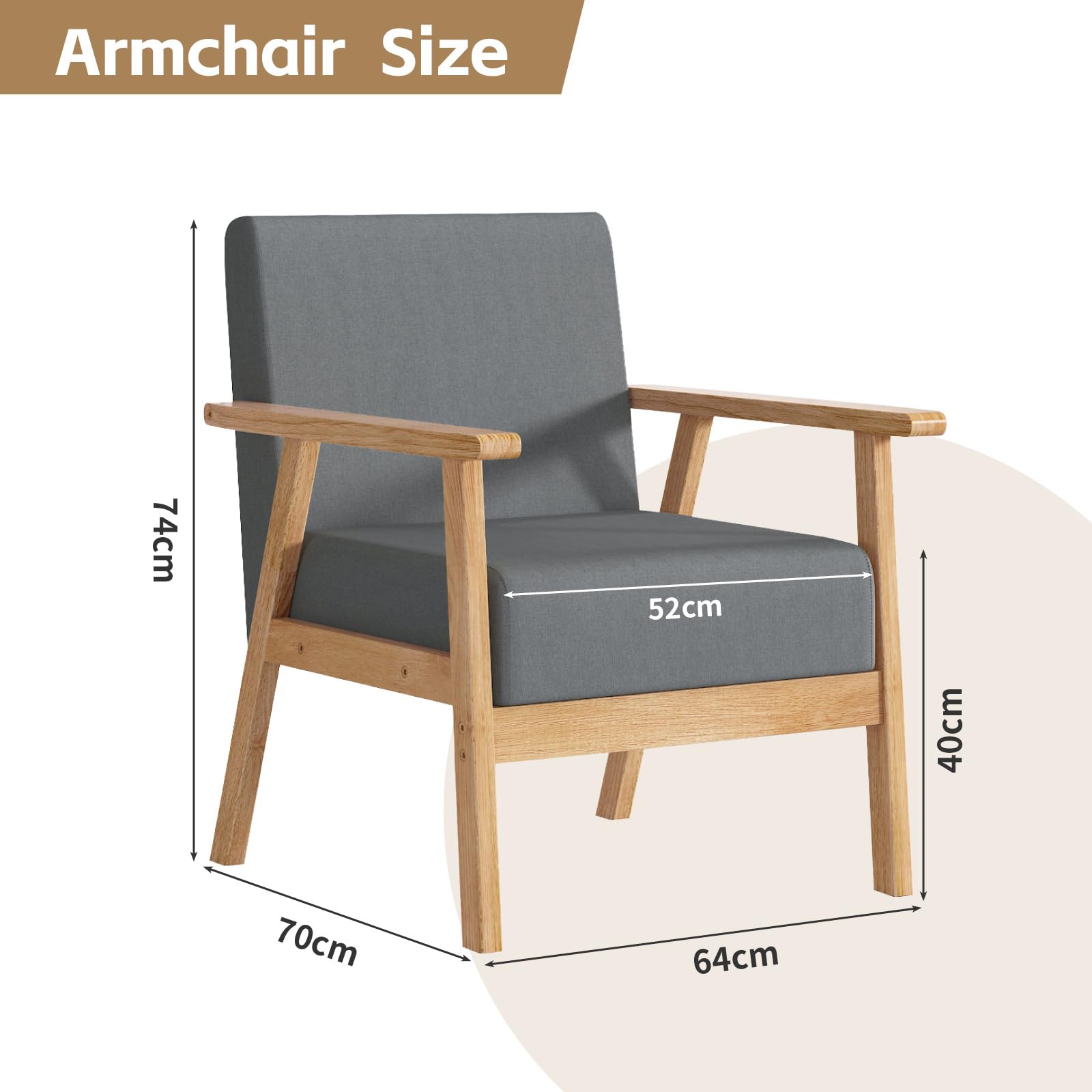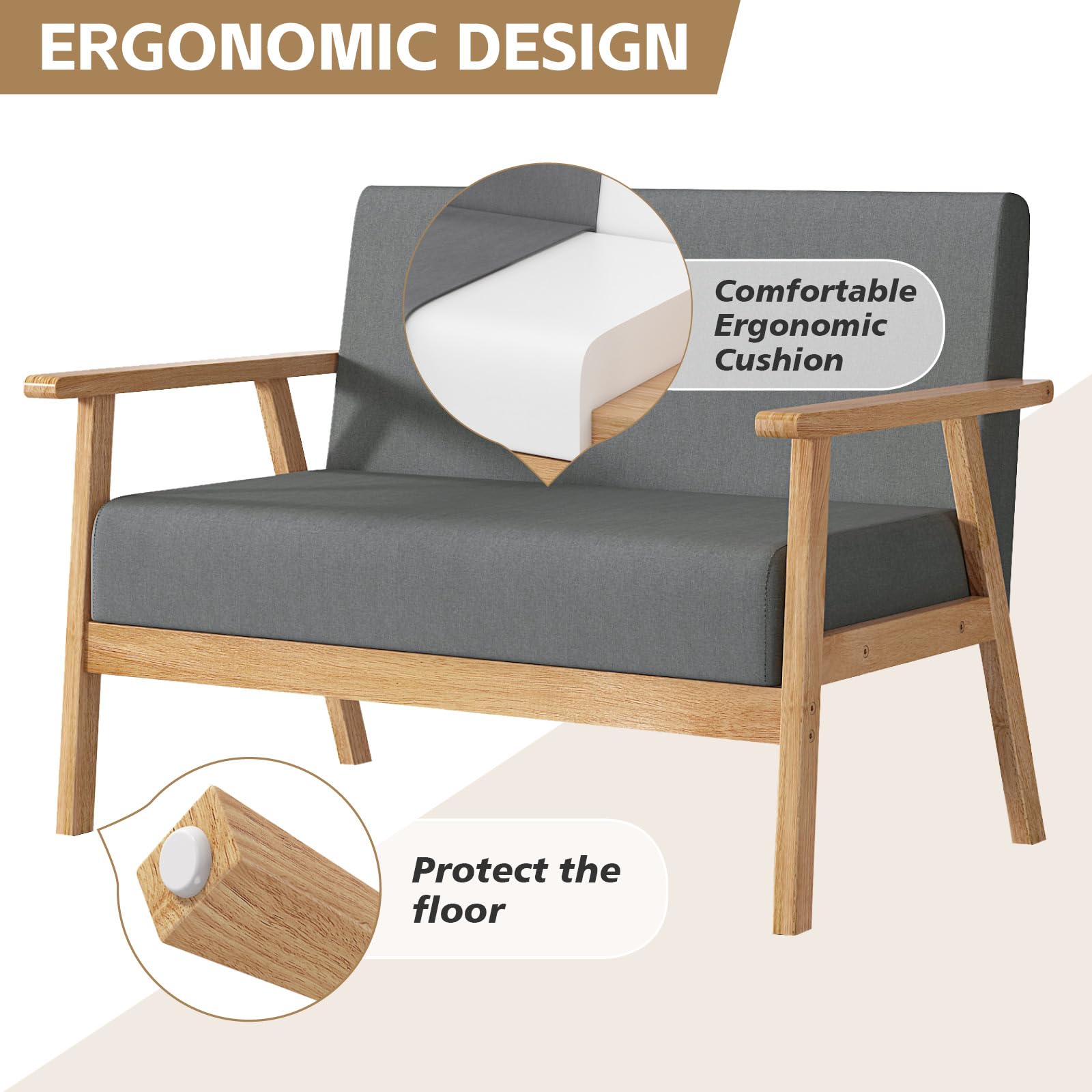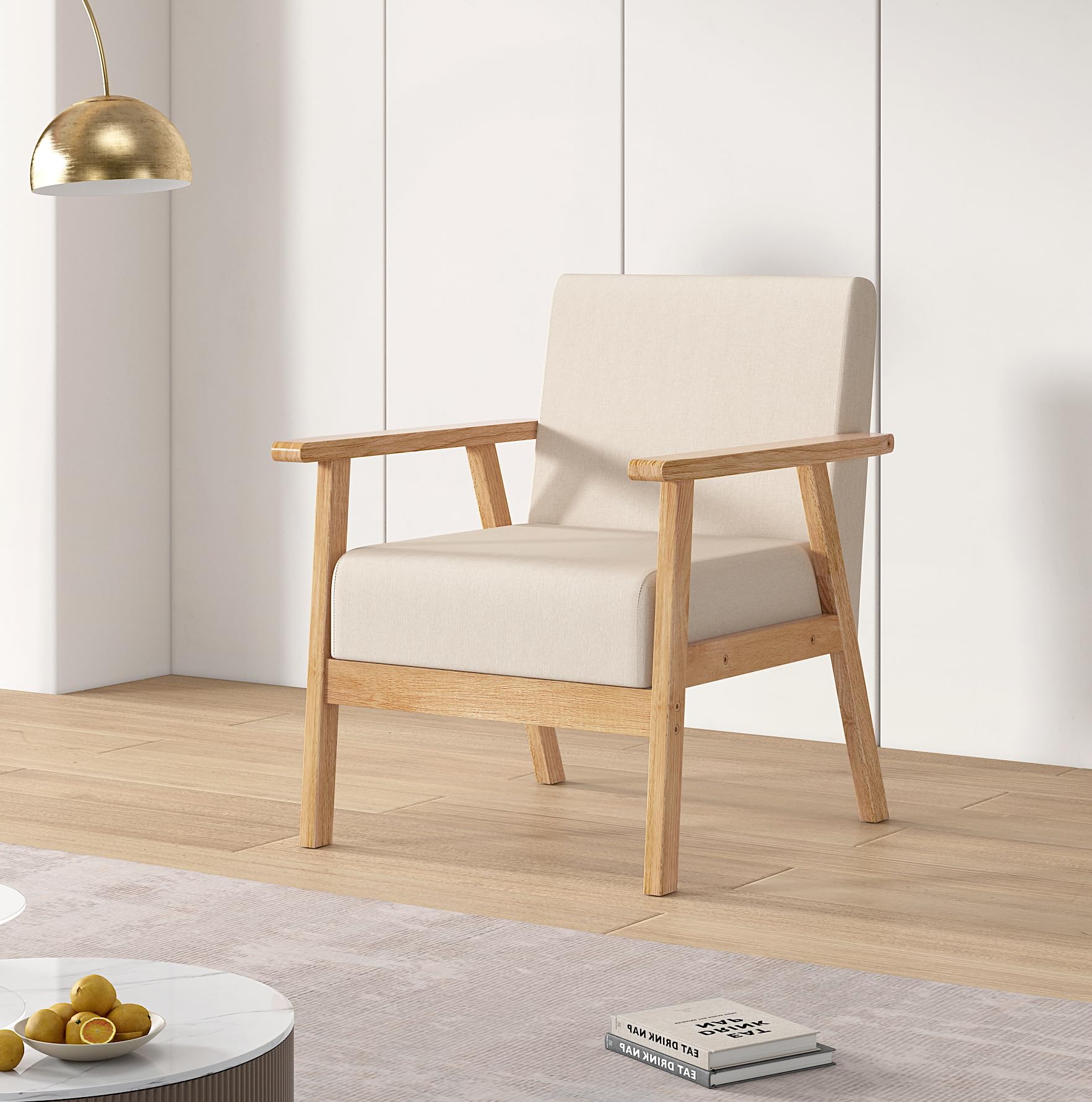 - Natural hardwood frame for sturdy and reliable construction this attractive wood-framed chair has it all: style, comfort, and durability. It features a unique open-framed arm design.