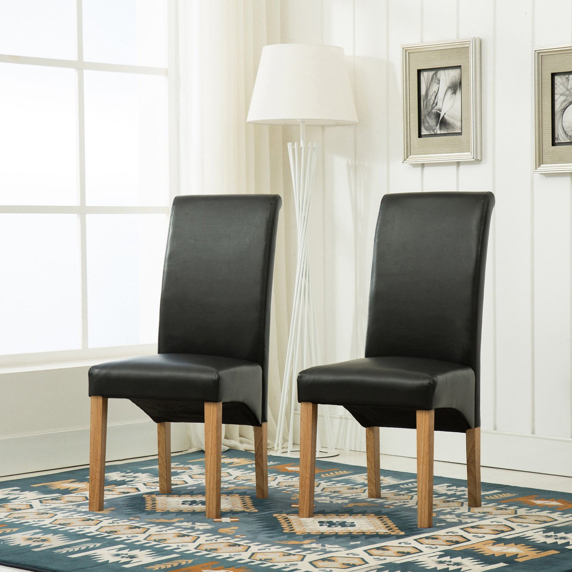 Set of 2 Faux Leather Dining Chairs Roll Top Scroll High Back For Home & Commercial Restaurants